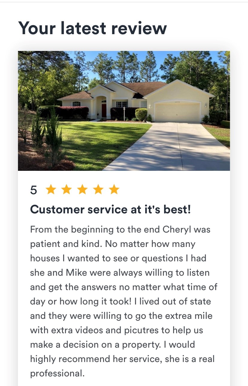 My name is Cheryl Regina and I am a real estate professional from Dunnellon Florida. I have worked in sales most of my career and know how valuable it is to build a relationship of trust. I enjoy working with both the seller and the buyer and I am committed to ensuring you achieve your real estate goals.